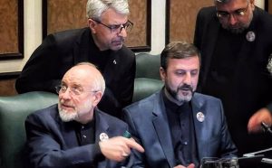 The Iranian negotiation delegation headed by Parliament Speaker Mohammad Baqer Qalibaf (left) consults following the first phase of negotiations with the US delegation in Islamabad, April 11, 2026. (Press TV)